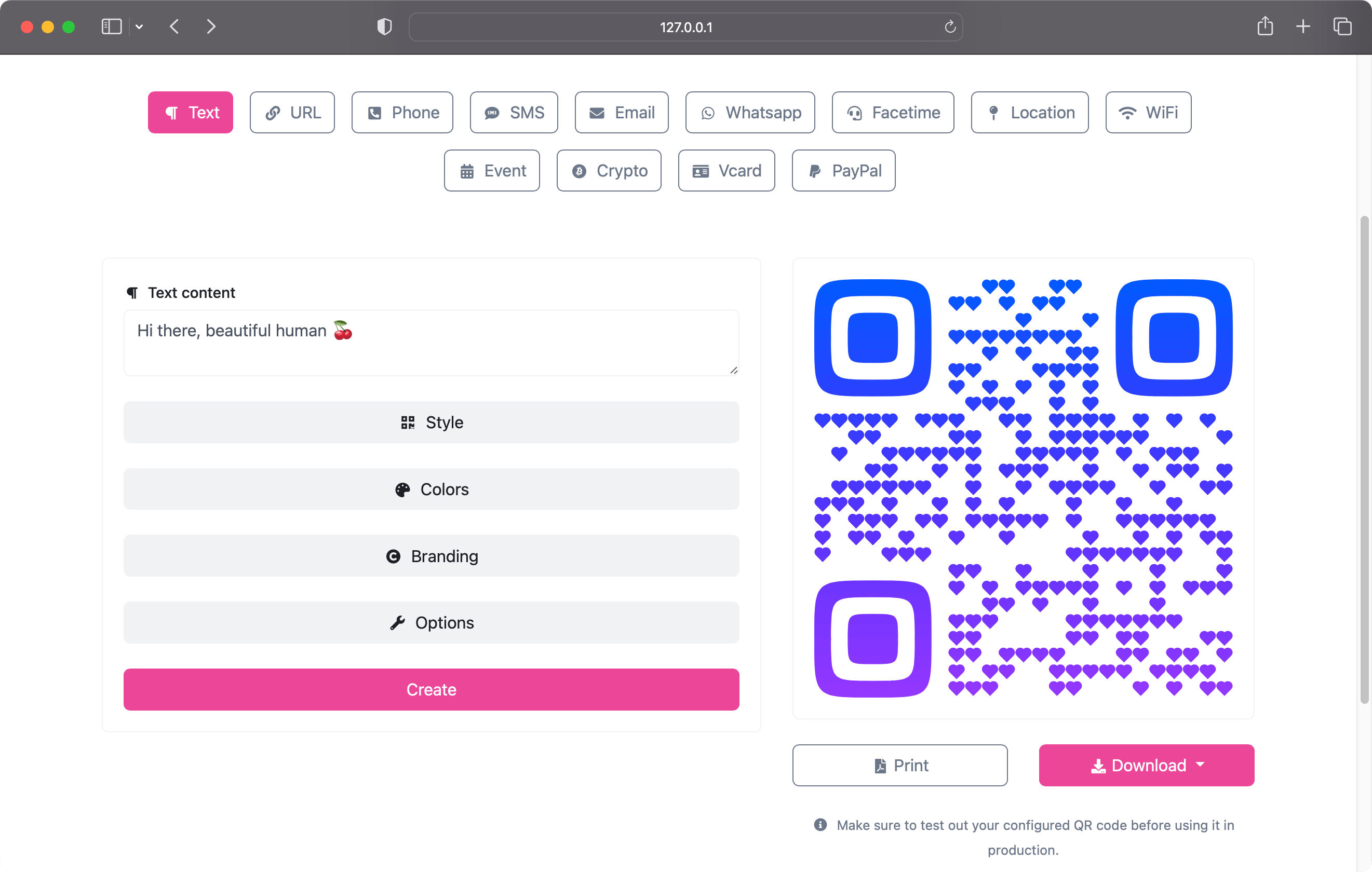 Create the QR code you need, brand it with your own colors & logo.